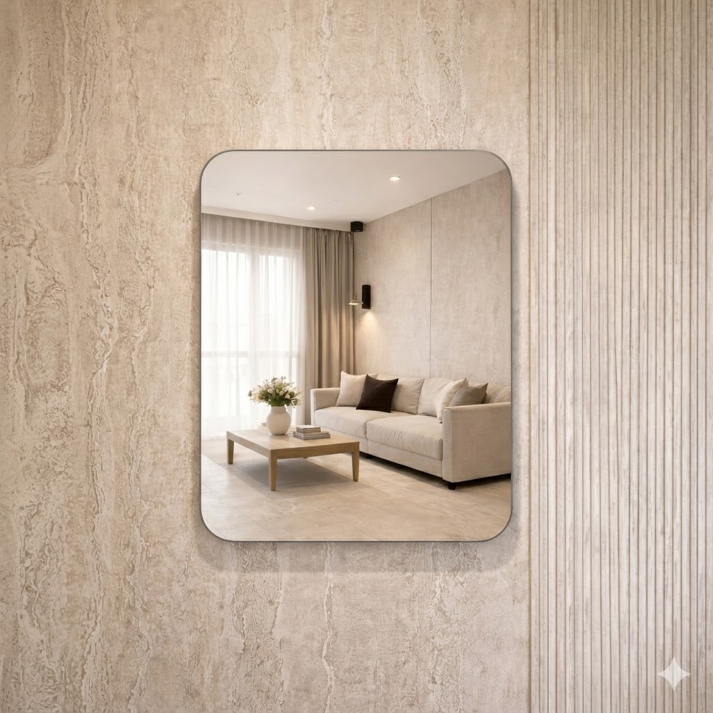 מראה פינות מעוגלות היא מראה בלגית באיכות גבוהה במיוחד, המיוצרת בהתאמה אישית מלאה – בכל מידה ובכל צורה, בהתאם לדרישת הלקוח ולאופי הפרויקט. מתאימה לחללים פרטיים ומסחריים כגון חדרי רחצה, חללי מגורים, לובאים, משרדים וחנויות.